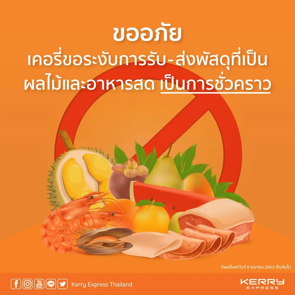 เคอรี่ จึงของดรับ-ส่งพัสดุที่เป็นอาหารและผลไม้สดเป็นการชั่วคราว ตั้งแต่วันนี้ (8 เมษายน 2563) เป็นต้นไป