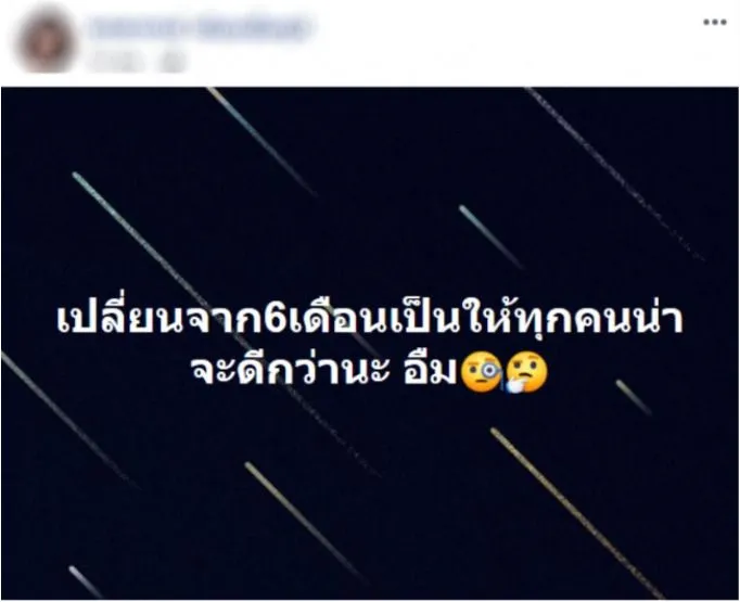 ล่าสุดวันที่ 8 เม ย 63 มีผู้ใช้เฟสบุ๊ครายหนึ่ง ได้มีการโพสต์ข้อความ ระบุข้อความว่าเงิน 5000 จาก 3 เดือนเป็น 6 เดือน ผมว่าแจกให้คนที่เค้าเดือดร้อนกระจายออกไปดีกว่าไหม 30000ต่อคน 6เดือนกระจายให้ได้ทุกครัวเรือนไป เงินสมทบประกันสังคมของแต่ละบุคคล ไม่ต้องรออายุ55ปีหรอก แจกคืนเขาเถอะยามเดือดร้อนเอาไปเก็บไว้ให้พวก