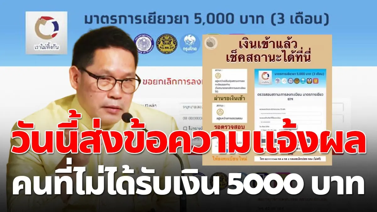 วันนี้ส่งข้อความแจ้งผล คนที่ไม่ได้รับเงิน 5000 บาท
