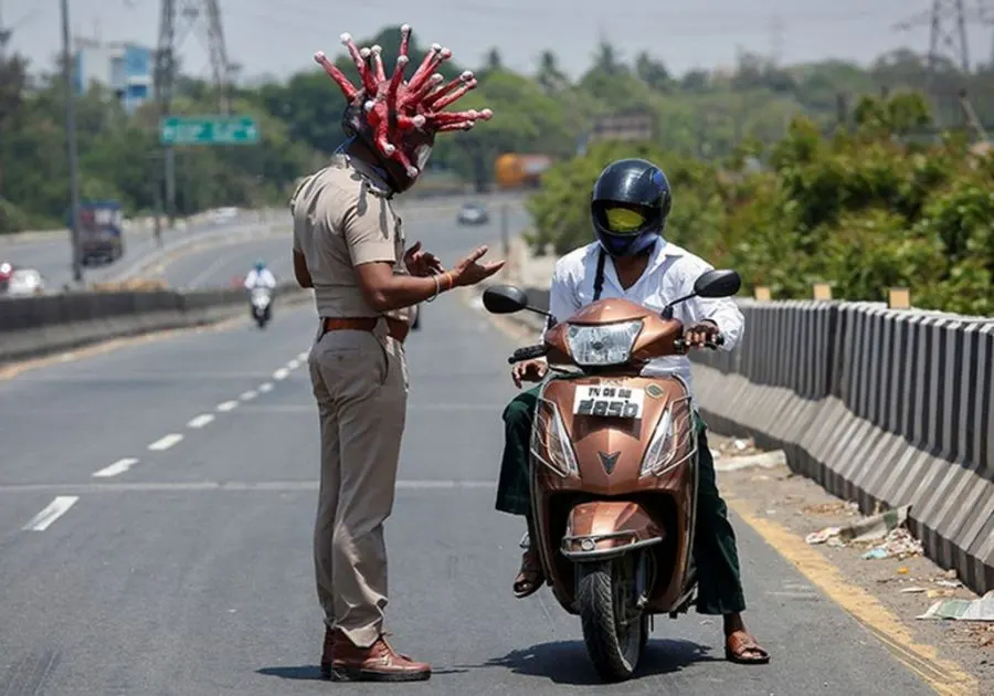แต่เนื่องจากทุกคนถูกขอให้อยู่ในบ้านเท่านั้นคุณสามารถจินตนาการได้ว่าไม่ใช่ทุกคนที่กระตือรือร้นเกี่ยวกับการปฏิบัติตามแนวทาง น่าเสียดายที่ดูเหมือนว่าบางคนไม่เข้าใจความหมายของการแยกทางสังคม (ล็อค) และความยากลำบากของรัฐบาลในการดำเนินการนี้ อย่างไรก็ตามตำรวจที่กระตือรือร้นอย่างมากตัดสินใจว่าเขาจะทำให้ผู้คนหวาดกลัวให้อยู่บ้านเพื่อป้องกันการแพร่กระจายของไวรัสโคโรนา เขาสร้างหน้ากาก DIY ของตัวเองจากหมวกที่ออกแบบมาให้คล้ายกับรูปแบบของไวรัสโคโรนาและหยุดยั้งผู้ที่ต้องการออกจากบ้านเพื่อจุดประสงค์ที่ไม่สำคัญ ด้วยหน้ากากนี้เขาแสดงให้ผู้คนเห็นว่าการคุกคามของโคโรนานั้นรุนแรงมากและเป็นเรื่องสำคัญมากที่จะต้องอยู่ในบ้านให้นานที่สุด