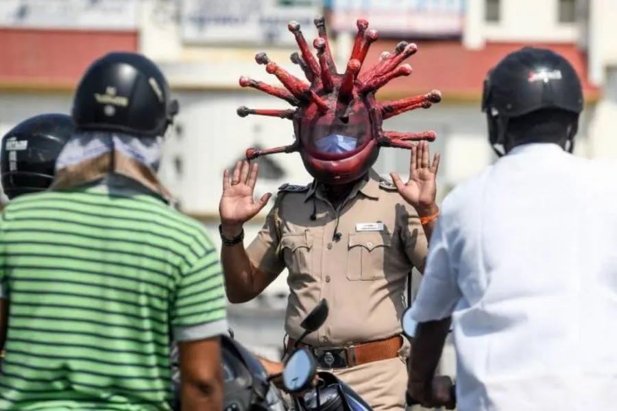 ตำรวจอินเดีย ไอเดียเจ๋ง หมวกCovid-19