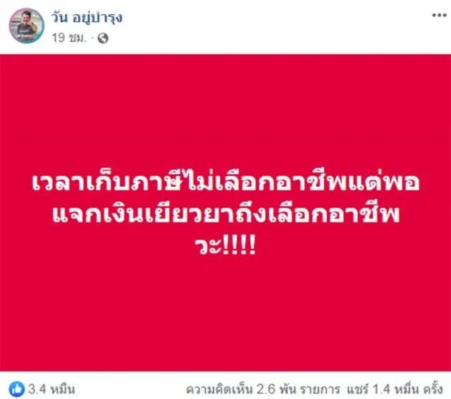 เวลาเก็บภาษีไม่เลือกอาชีพแต่พอแจกเงินช่วถึงเลือกอาชีพวะ