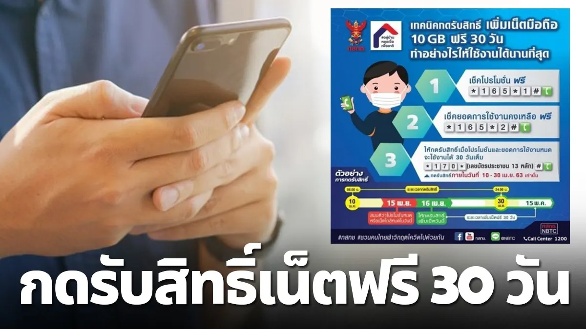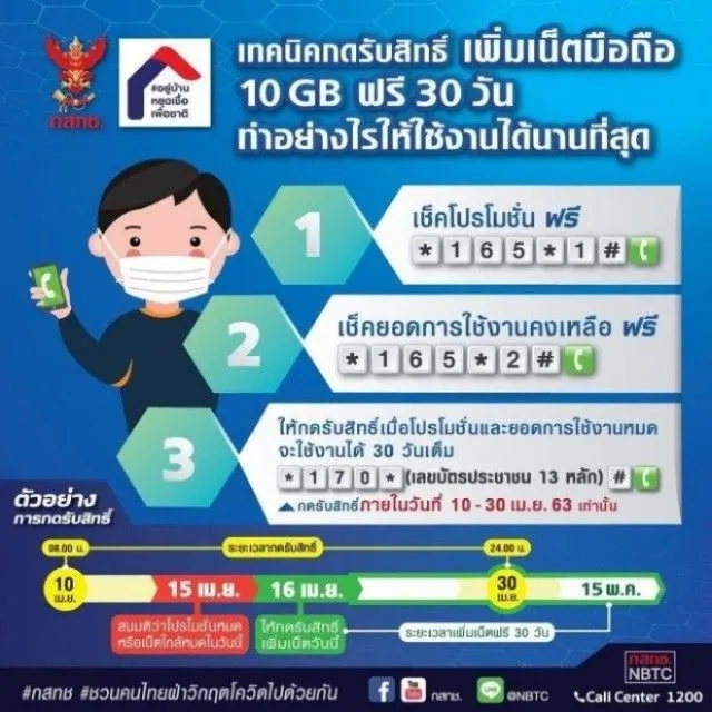 โดยตรวจสอบและรับสิทธิ์ได้ตั้งแต่ 10ถึง30 เมษายน 2563 เมื่อวันที่ 6 เมษายน เพจ กสทช ได้เผยแพร่เผยคลิปของ นายฐากร ตัณฑสิทธิ์ เลขาฯ กสทช เผยเทคนิคกดรับสิทธิ์เพิ่มเน็ตมือถือ และอัปสปีดเน็ตบ้านอย่างไร ให้ได้รับผลประโยชน์สูงสุด