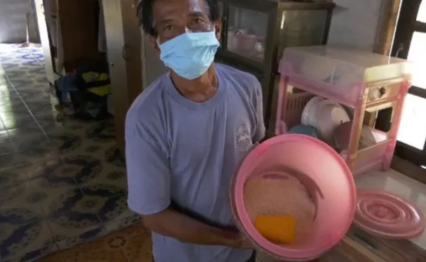วันนี้ ตนเหลือข้าวสารกรอกหม้อมื้อสุดท้ายเท่านั้น ส่วนอาหารก็มีแต่ปลาเค็มอย่างเดียว ไข่ และกับข้าวอื่น ๆ ไม่มีเลย เพราะตนไม่มีเงินซื้อ จะไปขอยืมเงินใครในหมู่บ้านก็ไม่ได้ เนื่องจากทุกคนเดือดร้อนเหมือนกันหมด ครอบครัวตนอยู่กัน มีลูก และหลาน 4 คน ลูกชายคนโตพิการทางสมองมานานหลายปีแล้ว ส่วนภรรยา รับจ้างทำงานอยู่ที่กรุงเทพฯ ตอนนี้ตกงานเหมือนกัน จะกลับมาบ้านก็ไม่ได้ เพราะอยู่พื้นที่เสี่ยง
