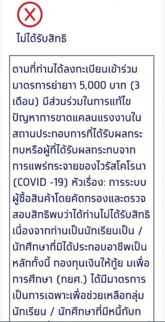 สถานะแจ้งว่า ไม่ได้รับสิทธิ