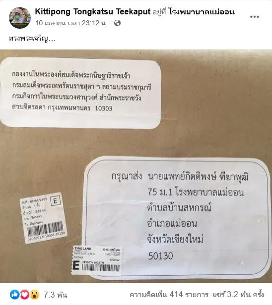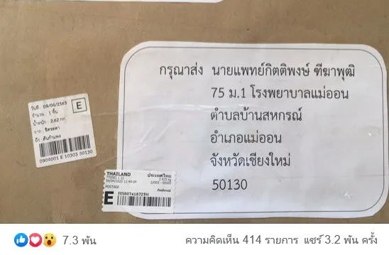 คุณหมอ รพ.แม่ออนโพสต์ภาพกล่องไปรษณีย์ รู้ที่มาน้ำตาซึมไม่รู้ตัว