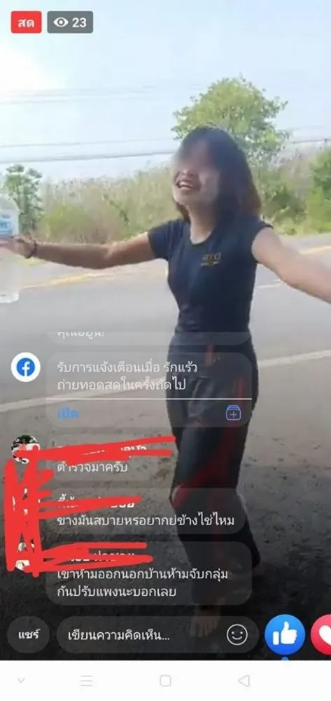 โดยล่าสุดเพจเฟซบุ๊ก Social Hunter.2020 ได้โพสต์ภาพหญิงสาวรายหนึ่งออกมาไลฟ์สดเล่นสงกรานต์ในพื้นที่ จ.ลพบุรี ชนิดที่ไม่สนใจ พ.ร.ก. ฉุกเฉิน ที่ถูกประกาศออกมาเลยแม้แต่น้อย
