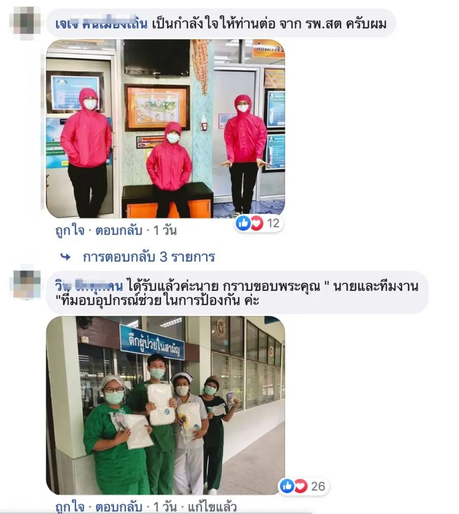ที่ได้เพราะบุญเก่า เคยช่วยพวกเขาตอนจีนมีการระบาดใหม่ เขาต้องการหน้ากากอนามัยมาก ตอนนั้นบ้านเรายังไม่มีวิกฤติ เราหาซื้อส่งไปช่วยที่ประเทศจีน ผ่านผู้ช่วยทูตฝ่ายตำรวจไทยประจำประเทศจีน 10,000 ชิ้น อาจจะไม่มาก แต่มันคืออานิสงฆ์ให้พวกเราสามารถขอซื้อเขามาเพื่อบรรเทาความเดือดร้อนของคุณหมอและทีมงาน