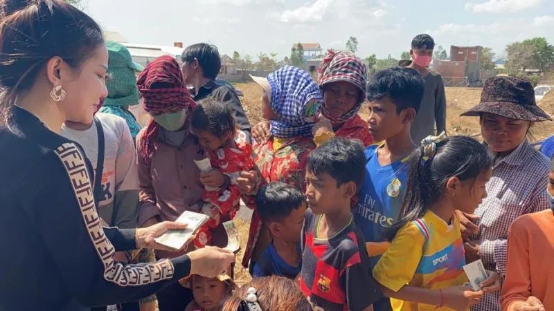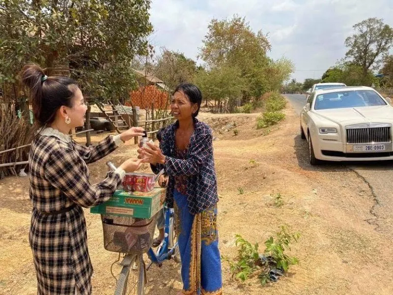 เมื่อวันที่ 13 เมษายน เพจเฟซบุ๊ก เป็นเรื่อง เป็นลาว ได้เผยภาพของ ไฮโซเขมรใจบุญ ที่เดินแจกเงิน และมอบข้าวสาร พร้อมทั้งแอลกอฮอล์ล้างมือ ให้กับคนยากจนในกรุงพนมเปญ โดยระบุว่า แจกเงินสู้covid เศรษฐีร้านเพชร ยอดคนใจบุญกัมพูชา