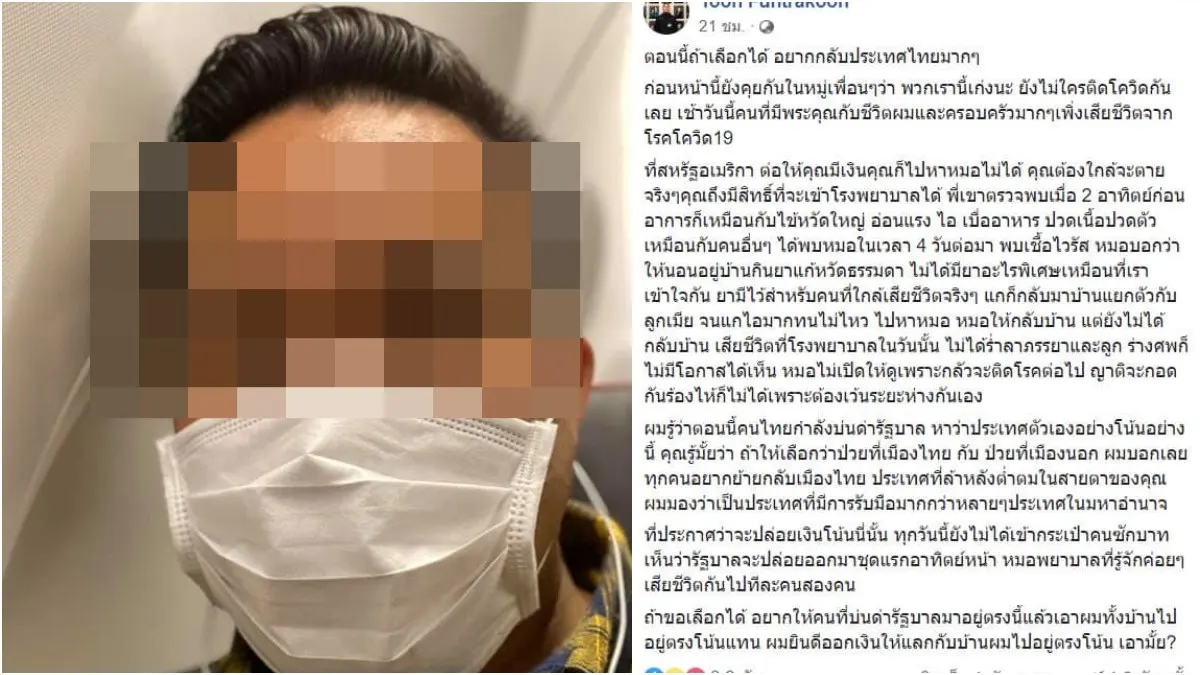 นักธุรกิจไทยในสหรัฐ เล่าชีวิตเผชิญโควิดโหดสุด ท้าแรงใครบ่นด่ารัฐบาลไทยตอนนี้ มาแลกบ้านกับผมมั๊ย จากสถานการณ์โรคปอดอักเสบชนิดรุนแรง