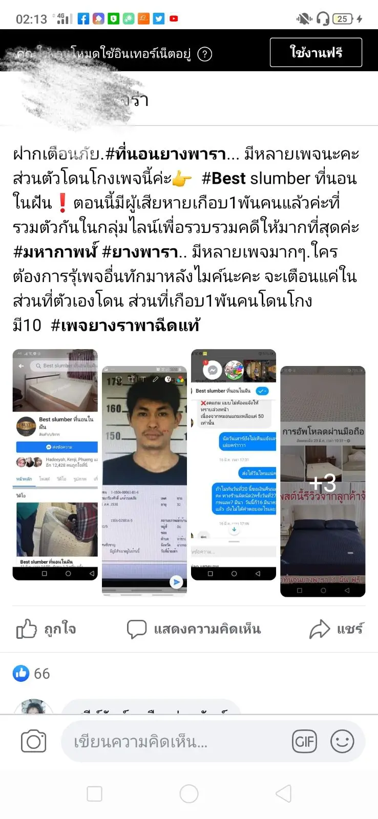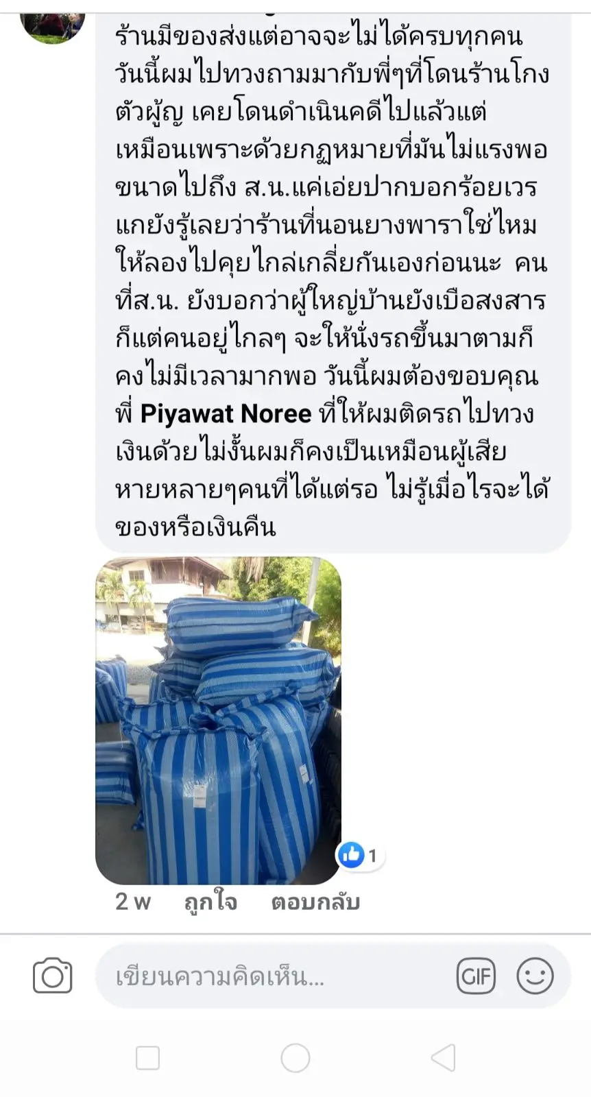 ล่าสุดผู้เสียหายจากการโดนหลอกขายหมอนยางพาราในเฟสบุ๊ค
