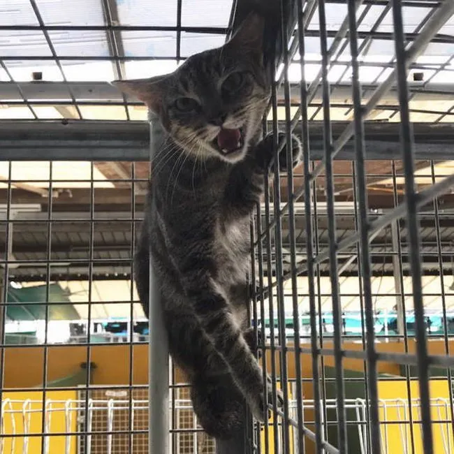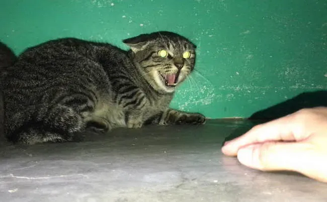 แมวไร้บ้านอายุ 2 ปี ชื่อว่า Angie ไม่ชอบให้ใครมาสัมผัสตัวมัน ถ้ามีใครคิดจะสัมผัสตัวของมัน มันจะขู่พร้อมกับวิ่งหนีเข้าไปหลบมุม และซ่อนตัวอยู่ในนั้น ซึ่ง Fiona Loh นักกู้ภัยแมวอิสระที่ประจำอยู่ในสิงคโปร์ บอกว่า Angie ไม่อยากอยู่ใกล้มนุษย์ทุกคน และบางครั้งมันจะฉี่ออกมาอีกด้วย หากถูกกดดันมากจนเกินไป