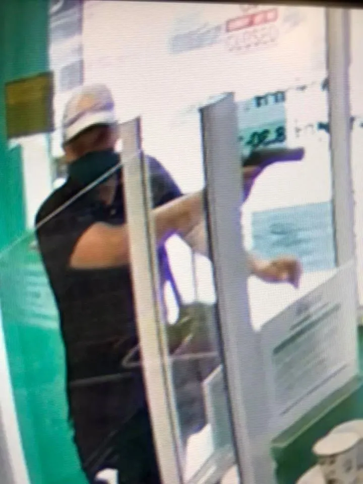 สอบสวนพยานที่เห็นเหตุการให้การว่า ก่อนเกิดเหตุมีคนร้าย 1 คนเป็นชาย สวมหมวกแก๊ปสีฟ้า เสื้อยืดแขนสั้นสีดำ กางเกงยีนส์สวมหน้ากากอนามัยสีดำ รองเท้าผ้าใบสีขาว สะพายกระเป๋าเปิดประตูพร้อมได้ใช้อาวุธปืนจี้พนักงานที่เคาเตอร์ที่ 1 โดยพูดกับทางพนักงานว่าให้หมอบลง แล้วส่งเงินมาให้ แต่พนักงานได้หมอบลงพร้อมกดสัญญาณไปยังตำรวจ ทางคนร้ายที่ถือปืนขวา จึงใช้มือเข้าไปล้วงเอาเงินสดไปกว่า 106,000 บาท