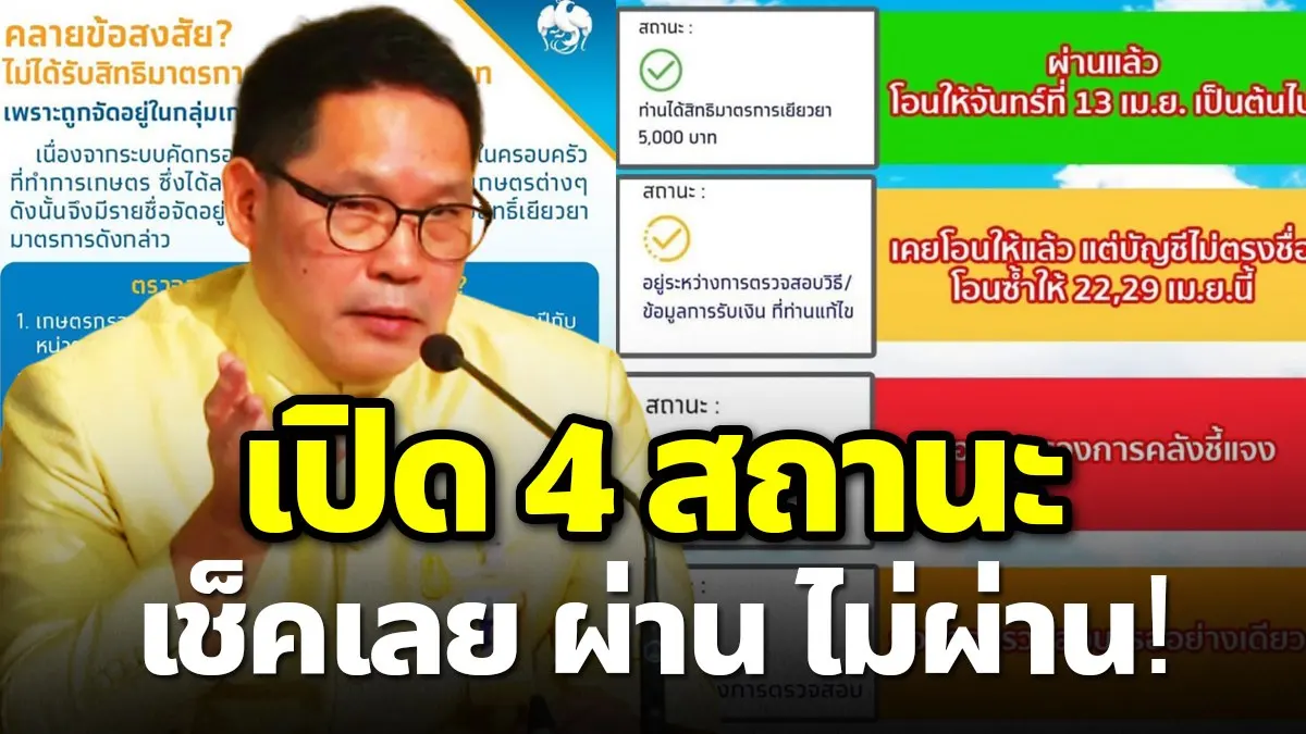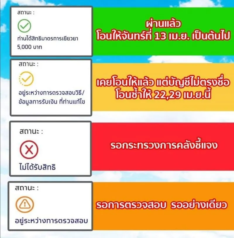 -เค้าเคยจะโอนให้แล้วแต่บัญชีชื่อไม่ตรง พอแก้ไขแล้วเขาจะทำการตรวจสอบหากผิดก็แก้ใหม่ หากถูกต้อง เขาจะโอนซ้ำให้อีกครั้ง วันที่22 และ29 เม.ย.นี้