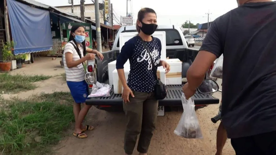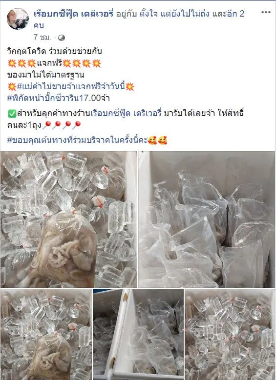 ต่อมาผู้สื่อข่าวได้สืบหาข้อมูลเพิ่มเติมพบว่าเป็นแม่ค้าขายปลาหมึกสดนำมาแจกให้คนที่มีผลกระทบจากโควิด และได้โพสต์ในเฟซบุ๊กส่วนตัวอีกว่า "วิกฤตโควิด ร่วมด้วยช่วยกันของมาไม่ได้มาตรฐาน#แม่ค้าไม่ขายจ้าแจกฟรีจ้าวันนี้#พิกัดหน้าบิ๊กซีวาริน17.00จ้า สำหรับลุกค้าทางร้านเรือบกซีฟู๊ด เดริเวอรี่ มารับได้เลยจ้า ให้สิทธิ์คนละ1ถุง" [yemgo]