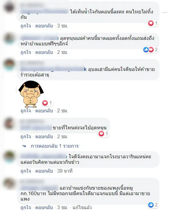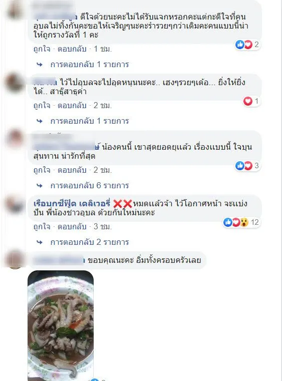 ทั้งนี้ ชาวเน็ตยังบอกอีกว่า "แม่ค้าร้านนี้ใจดีจริงๆๆค่ะ เคยเป็นลูกค้าด้วย แต่อยู่ไกลไปขอรับด้วยไม่ได้ ตกงานเป็นเดือนแล้ว,อุบลเฮามีแต่คนใจดีขอให้ค้าขายร่ำรวยเด้อสาธุ" ชาวเน็ตกล่าวฯ