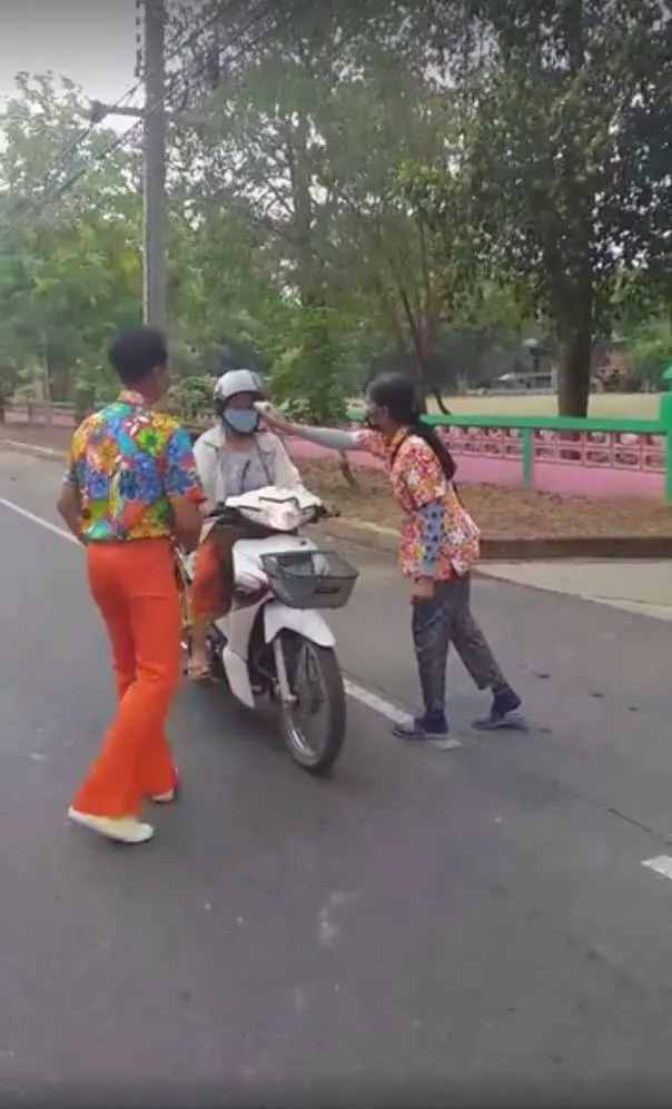 ล่าสุดโลกโซเชียลมีการแชร์คลิป จุดคัดกรองตรวจโควิด19 โดยมีเจ้าหน้าที่แต่งชุดเที่ยวสงกรานต์ เสื้อลายดอกกางเกงสีสันสดใส เปลี่ยนจากโบกรถสาดน้ำมาเป็นโบกรถตรวจวัดไข้ให้กับประชาชนที่สัญจรผ่านไป-มา บรรยากาศเต็มไปด้วยความครึกครื้น