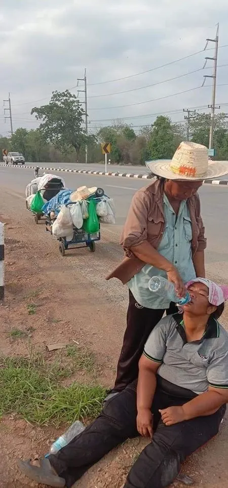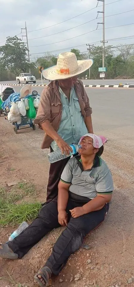ไม่ไหวแล้ว ! 2 ผัวเมีย "เดินเท้า" จากสิงห์บุรี จะไปศรีบุญเรือง เดินมา 20 วันแล้ว