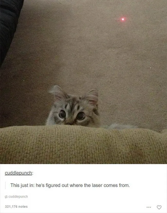 17. แมวตัวนี้แปลกไม่สนใจเลเซอร์ที่พื้น แต่กลับสนใจจากที่ยิงเลเซอร์แทน