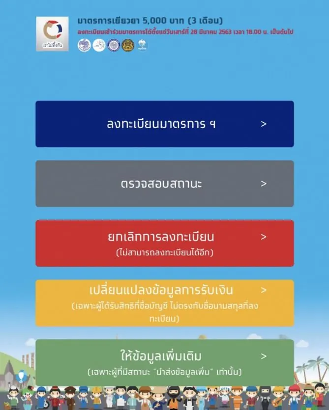 ทางเว็บไซต์ยังได้เพิ่มเมนูใหม่ขึ้นมาเพื่ออำนวยความสะดวกให้กับผู้ลงทะเบียนที่ต้องการตรวจสอบสถานะ ยกเลิกการลงทะเบียน (ไม่สามารถลงทะเบียนได้อีก) เปลี่ยนแปลงข้อมูลการรับเงิน (เฉพาะผู้ได้รับสิทธิ์ที่ชื่อบัญชีไม่ตรงกับชื่อนามสกุลที่ลงทะเบียน) เพื่อประโยชน์ของตัวผู้ลงทะเบียนเอง