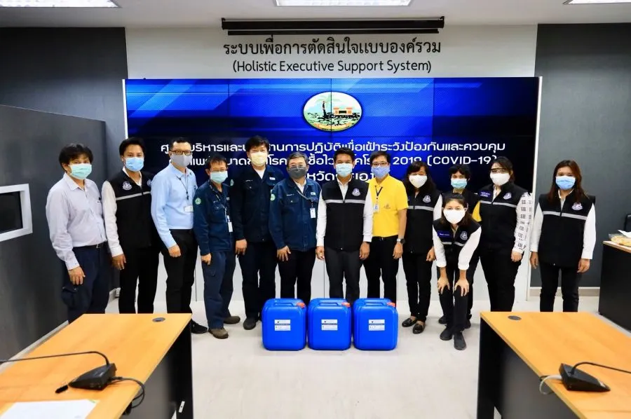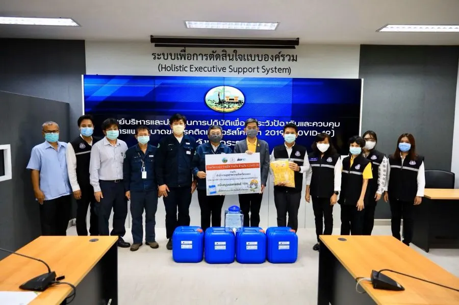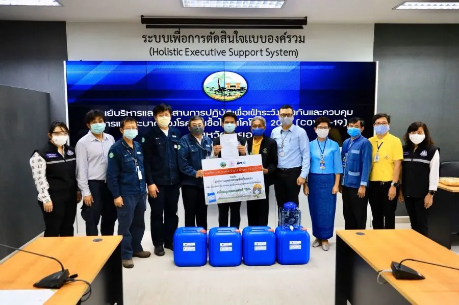 เมื่อเร็วๆนี้ ณ ศาลากลางจังหวัดระยอง นายสุรศักดิ์ เจริญศิริโชติ ผู้ว่าราชการจังหวัดระยอง รับมอบแอลกอฮอล์สำหรับทำความสะอาดมือ 75% จำนวน 50 ถัง ๆ ละ 30 ลิตร รวม 1,500 ลิตร จากบริษัท ไออาร์พีซี จำกัด (มหาชน) ในโครงการ “จังหวัดระยองร่วมมือ ร่วมใจ ต้านภัยโควิด 19” โดยนายพุทธิกรณ์ วิชัยดิษฐ อุตสาหกรรมจังหวัดระยอง พร้อมด้วยผู้แทนจากบริษัท ไออาร์พีซี จำกัด (มหาชน) ได้แก่ นายวรวุฒิ ศิวะเพ็ชรานาถ รองกรรมการผู้จัดการใหญ่ สายปฏิบัติการผลิตปิโตรเคมีและการกลั่น, นายรัฐพล อุณากัณฑ์พร ผู้ช่วยกรรมการผู้จัดการใหญ่ สายงานโครงสร้างสาธารณูปโภคและโลจิสติกส์ และนายสุวิทย์ สุขภูตานันท์ ผู้จัดการฝ่ายบริหารความปลอดภัย อาชีวอนามัยและสิ่งแวดล้อม พร้อมด้วยหัวหน้าส่วนราชการในจังหวัดระยองร่วมเป็นเกียรติในการรับมอบ