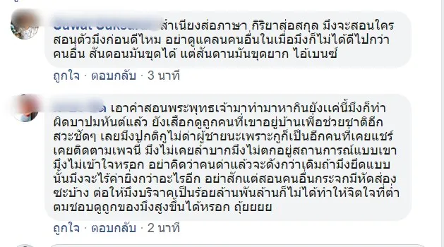 ส่วนชาวเน้ตก็ยังเม้นต์ถล่มไม่เลิก หลังมีการโพสต์บริจากคนเงินให้กับสภากาชาติไทย อนุโมทนาบุญร่วมกัน