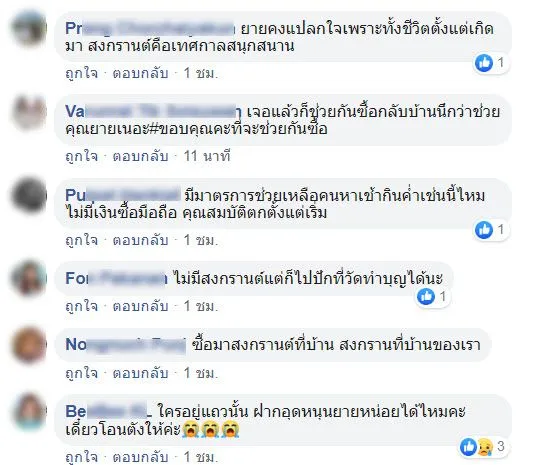 โดยจากโพสต์ดังกล่าวได้มีชาวเน็ตหลายท่านเข้ามาแสดงความคิดเห็นพร้อมทั้งบอกว่าน่าสงสารคุณยายที่ตั้งใจทำตุงมาไว้ขายช่วงเทศกาล แต่ปีนี้กลับยกเลิกสงกรานต์เพราะโรคโควิด-19 ยังไงคนที่อยู่ใกล้ๆก็สามารถไปช่วยอุดหนุนยายกันได้นะคะ