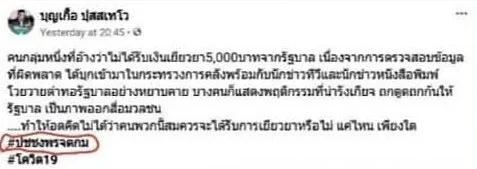 จากกรณีที่มีผู้ช่วยส.ส. สังกัดพรรคภูมิใจไทย ออกมาแสดงความคิดเห็นตำหนิผู้ที่ได้รับความเดือดร้อน ที่ไปขอความช่วยเหลือที่กระทรวงการคลังโดยระบุว่า.. “คนกลุ่มหนึ่งที่อ้างว่าไม่ได้รับเงินเยียวยา 5,000 บาทจากรัฐบาล เนื่องจากการตรวจสอบข้อมูลที่ผิดพลาด ได้บุกเข้ามาในกระทรวงการคลังพร้อมกับนักข่าวทีวีและนักข่าวหนังสือพิมพ์ โวยวายด่าทอรัฐบาลอย่างหยาบคาย บางคนก็แสดงพฤติกรรมที่น่ารังเกียจ ถกตูดถกก้นให้รัฐบาล เป็นภาพออกสื่อมวลชน….ทำให้อดคิดไม่ได้ว่าคนพวกนี้สมควรจะได้รับการเยียวยาหรือไม่ แค่ไหน เพียงใด”