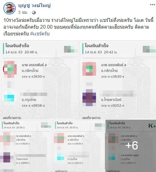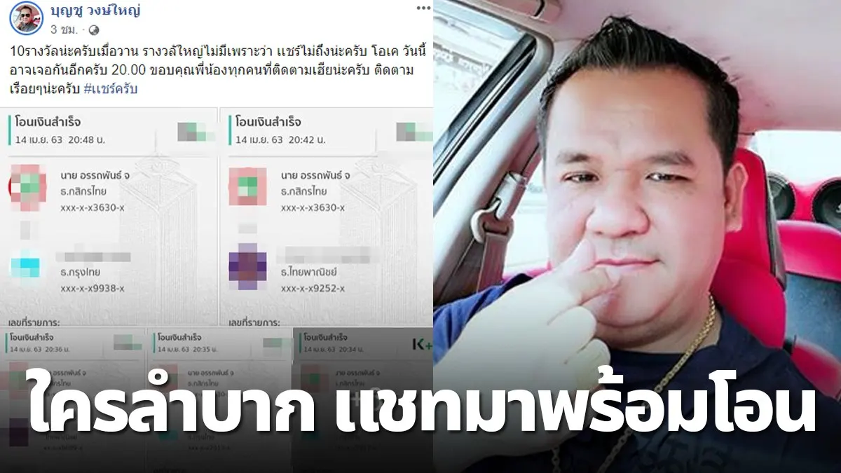ล่าสุดกับอีกหนึ่งผู้ใจดีที่เข้ามาช่วยเหลือโอนเงินให้ผู้ลำบากในช่วงนี้ โดยมีการโพสต์เฟซบุ๊กแจกเงินระบุว่า… เฮียรัก ทุกคนที่ติดตามเฮียน่ะครับ สุ่มเเจก อีก 10คนครับ เเค่เเชร์ ได้เงินค่าข้าว ค่าน้ำกันไปครับ คนละ 300เบาๆก่อนครับวันนี้ เเชร์คนระ 2เเชร์ครับ ขอไม่มากครับ ลุยๆครับ ใครที่รักเฮียกด ใจมาให้หน่อยครับ เเชทเเล้วใส่บัญชีพร้อมไว้น่ะครับ