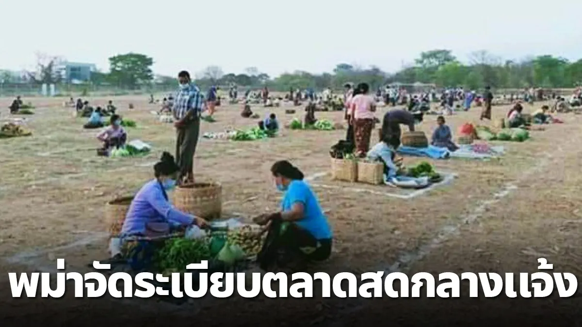 เพจเกษตร นานา โพสต์ ภาพตลาดเช้าของเมียนมา ทางการท้องถิ่น ใช้ การเว้นระยะห่างทางสังคม Social Distincing เป็นวิธีจัดการป้องกัน โควิด ไม่ต้องปิดตลาด แม่ค้าทำมาหากินก็ได้เงิน ชาวบ้านจับจ่ายก็ได้กิน!!