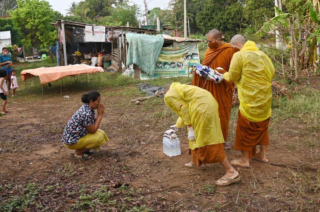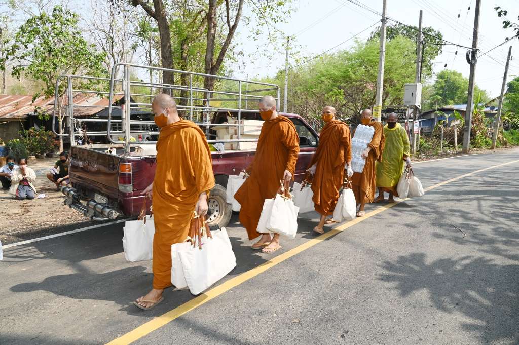 บางจุดชาวบ้านเกรงใจพระจะเดินไกลแบกของหนักจึงมารวมกันรอเป็นกลุ่ม บางเป้าหมายท่านก็เมตตาเดินตามหา เช่น เข้าไปถึงบ้านคนพิการ บ้านคนชรายากไร้ บ้านคนที่ยากจนข้นแค้นทั้งหลาย เกือบถึงบ้านหลังสุดท้าย ขณะที่พระช่วยกันขนของเดินแจก