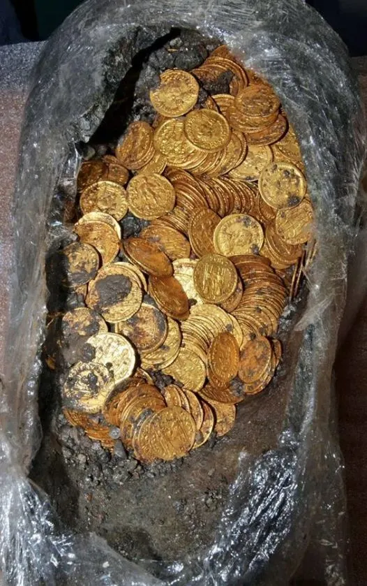 โดยรายงานได้ระบุว่าคนงานก่อสร้างขุดพบเหยือกหินและเหรียญทอง ขณะปรับปรุงพื้นที่เพื่อการก่อสร้างอาคารที่พักอาศัยหลังใหม่ โดยนักโบราณคดีเชื่อว่ามันมีอายุย้อนกลับไปในช่วงศตวรรษที่ 4-5 อันเป็นยุคโรมันตะวันตกล่มสลาย