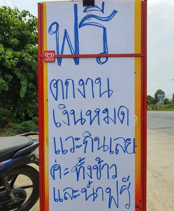 ซึ่งร้านต่างๆปิดเยอะมากที่ลพบุรีเธอเลยคิดว่าคนที่รายได้วันต่อวันจะทำอย่างไร เธอเจอคนมาขอข้าวขอน้ำแกงเพิ่ม เพราะตังไม่พอ ดูแล้วน้ำตาซึมคนที่หิวแล้วไม่มีจริงๆ เธอเลยตัดสินใจให้ข้าวทุกคนฟรี นำกลับไปให้ครอบครัวด้วย