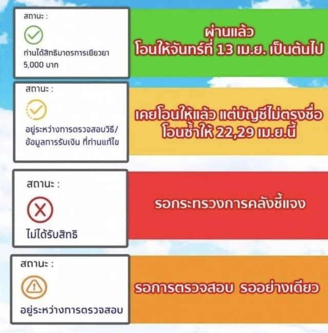 คลังเผย 4 สีสถานะล่าสุด ผู้ที่ลงทะเบียนรับเงิน 5000 ได้ ไม่ได้ ชัดเจน