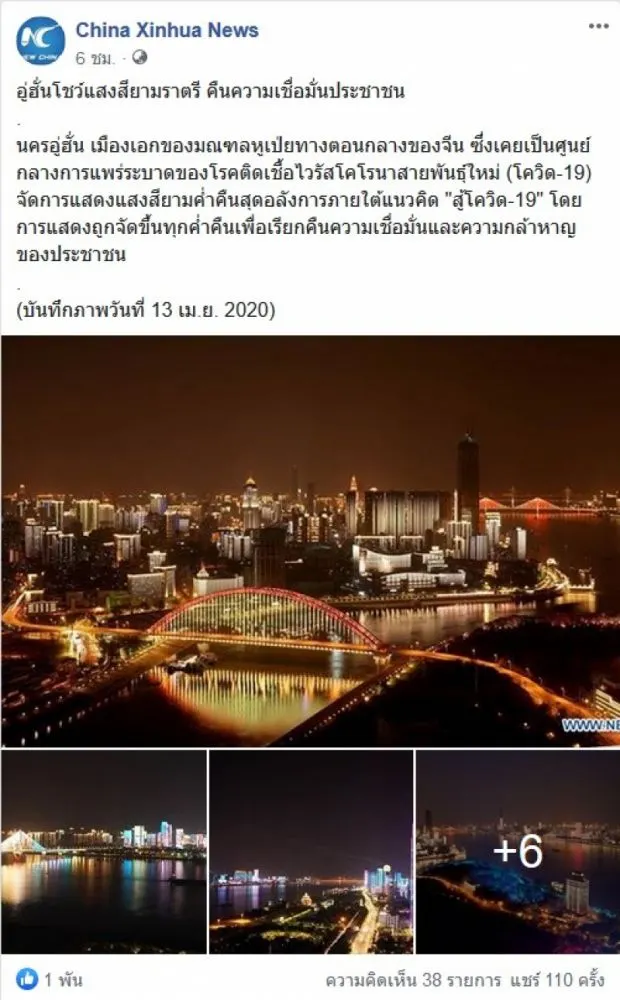 จากสถานการณ์ Covid ที่ส่งผลกระทบต่อประชาชนทั่วโลก ซึ่งจุดศูนย์กลางก็คือ อู่ฮั่น ประเทศจีน ที่ตอนนี้เปิดเมืองแล้ว หลังไม่พบผู้ติด Covid รายใหม่ โดยทางเพจ China Xinhua News ได้โพสต์ภาพของเมืองอู่ฮั่นที่กำลังจัดการแสดง แสงสีในยามค่ำคืน พร้อมระบุข้อความว่า