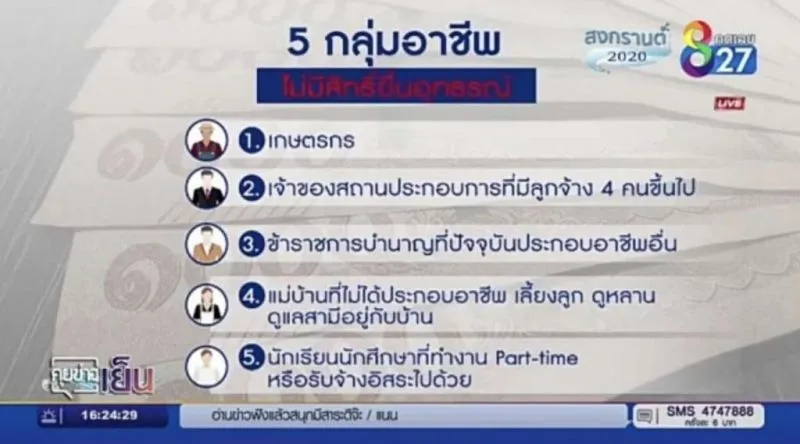 หมดสิทธิ์ไม่ต้องลุ้น คลังเผย 5 กลุ่มอาชีพ ไม่มีสิทธิ์ยื่นอุธรณ์ รับเงิน 5000