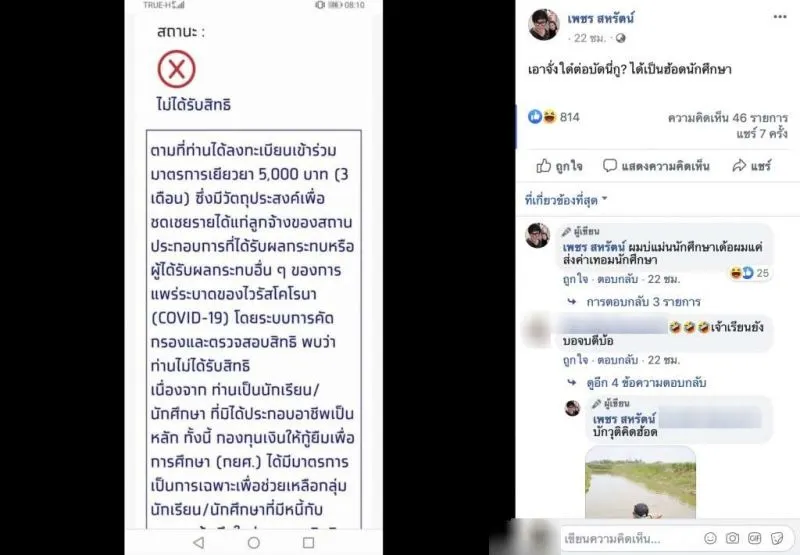 จากสถานการณ์ Covid ในปัจจุบัน ส่งผลให้ทางภาครับต้องออกมาตรการเยียวยาช่วยเหลือผุ้ที่ได้รับผลกระทบจาก Covid ซึ่งในการลงทะเบียนครั้งนี้ ก็ได้มีผู้เข้าร่วมลงทะเบียนเยอะมาก ซึ่งแต่ละคนต่างก็ไม่ได้รับสิทธิ์กันถ้วนหน้า ดั่งเช่น หนุ่ม เพชร สหรัตน์ ที่ได้ลงทะเบียนเพื่อรับสิทธิ์เงินเยียวยาจากรัฐบาลเช่นกัน แต่ไม่ได้รับสิทธิ์