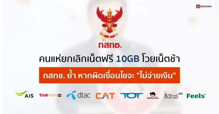 คนแห่ยกเลิกเน็ตฟรี 10GB โวยเน็ตช้า ทาง กสทช. ย้ำต้องได้ความเร็วสูงสุด หากผิดเงื่อนไขจะ “ไม่จ่ายเงิน”