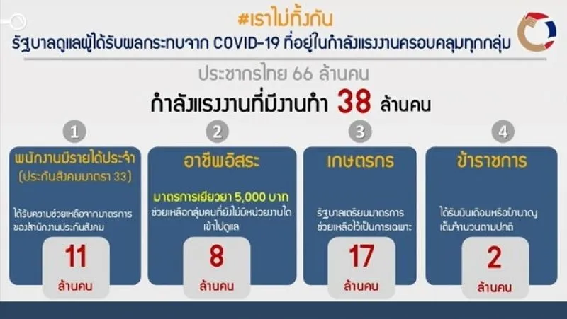 ก่อนหน้านี้เงินที่จ่ายให้ฝั่งแรงงานนอกระบบคือคลัง แรงงานที่ไม่มีประกันสังคม ทีนี้คนที่เขาจ่ายเงินประกันสังคม ก่อนหน้านี้ได้มีโอกาสคุยกับ ดร.จักษ์ บอกว่าเพดานอยู่ที่ 15,000 แต่จ่ายครึ่งเดียว 50 เปอร์เซ็นต์ คือ 7,500 แต่สัก 2 สัปดาห์เปลี่ยนแล้ว ตอนนี้เปลี่ยนเป็นกี่เปอร์เซ็นต์