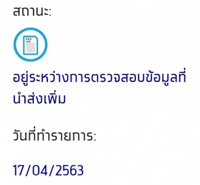 ขณะเดียวกัน เมื่อตรวจสอบสิทธิ์การลงทะเบียนเราไม่ทิ้งกัน พบว่า มีสถานะใหม่ขึ้น นั่นคือ อยู่ระหว่างการตรวจสอบข้อมูลนำส่งเพิ่ม คาดว่า ถ้าตรวจสอบสิทธิ์ผ่านก็น่าจะได้รับเงินในล็อตถัดไป ประมาณวันที่ 22 เมษายนนี้