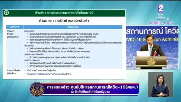 ในวันนี้ (17 เม.ย 63) เมื่อเวลา 11.30 น.ที่ทำเนียบรัฐบาล นพ.ทวีศิลป์ วิษณุโยธิน โฆษกศูนย์บริหารสถานการณ์การแพร่ระบาดของโรคติดเชื้อไวรัสโคโรนา 2019 (โควิด-19) หรือ ศบค.โดยมีตอนหนึ่งกล่าวว่า ขณะมีการประชุมของทีมนักวิชาการด้านต่างๆทั้งด้านสังคม ภาคเอกชน ผู้ประกอบการ ซึ่งมาหารือถึงข้อเสนอผ่อนคลายมาตรการล็อกดาวน์ เพื่อเตรียมพล.อ.ประยุทธ์ จันทร์โอชา นายกรัฐมนตรี ในฐานะ ผอ.ศบค. เพื่อพิจารณาคำสั่งหรือให้มีการผ่อนคลายกึ่งล็อกดาวน์ ตามคำแนะนำของผู้ประกอบการและผู้รับการบริการ ให้เปิดบางสถานที่ เช่น ร้านตัดผม จะต้องมีมาตรการสำหรับการประกอบการ เช่น เรื่องสถานที่ต้องเว้นระยะห่าง มีการกำหนดระยะเวลาใช้บริการ