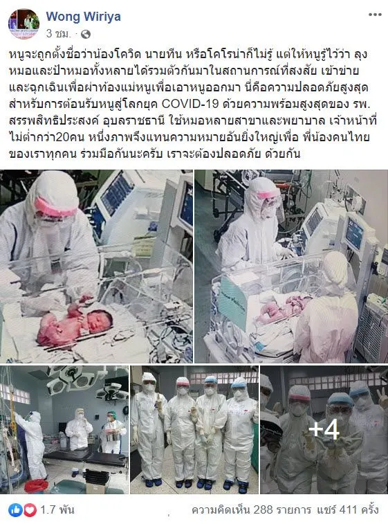 จากกรณีหนูน้อยที่ทีมแพทย์ รพ. สรรพสิทธิประสงค์ อุบลราชธานี ใช้หมอหลายสาขาและพยาบาล เจ้าหน้าที่ ไม่ต่ำกว่า 20 คน ฝ่าทำคลอดหนูน้อยติดเชื้อจากแม่เมื่อวันที่ 12 เมษายน ที่ผ่านมา