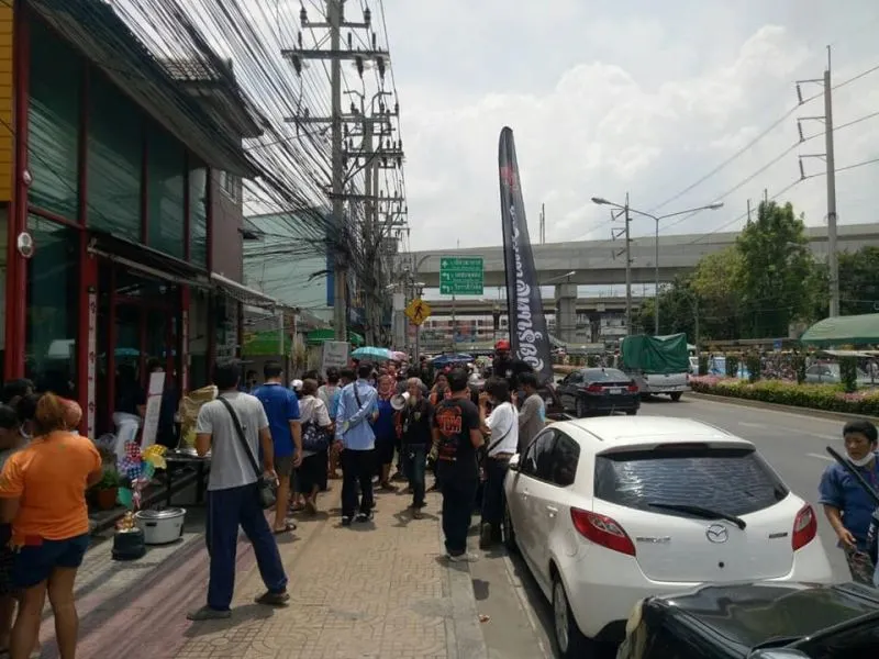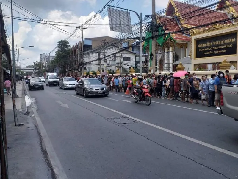 ซึ่งพบว่าประชาชนออกมาต่อแถวบริเวณวัดดอนเมือง ยาวเป็นกิโล เนื่องจากทราบว่าจะมีคนนำเงิน และสิ่งของมาบริจาค