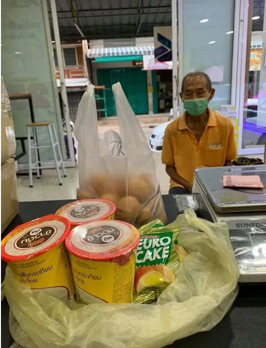 เราเลยถามว่า เอาเงินเดือนมาจากไหนบ้างแกตอบว่าเงินเบี้ยของคนสูงอายุ และบัตรประชารัฐ รวมเป็น 900 ค่าน้ำค่าไฟก้ปาไป 3-400 ที่เหลือเจียดกินทั้งเดือนกินบ้างอดบ้าง เราก็เลยซื้อไข่ให้และเอาขนมที่มีให้ไปก่อน และบอกคุณตาว่าถ้าเดือนไหนไม่พอจริงๆ เดินมาหาหนูนะคะ เดี๋ยวหนูจะแบ่งให้ราแค่อยากช่วยคุณตายังไงก็อยู่รวมโลกกัน