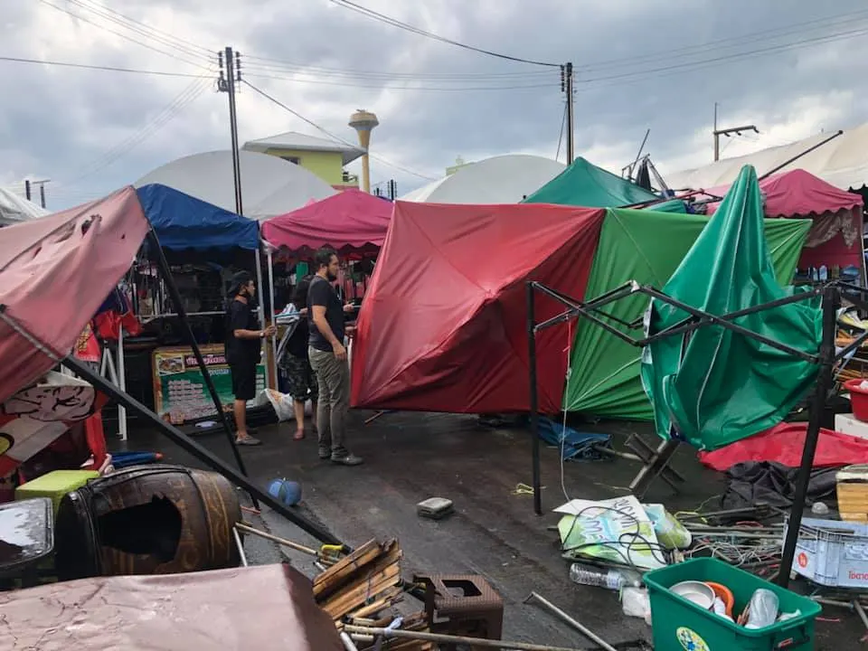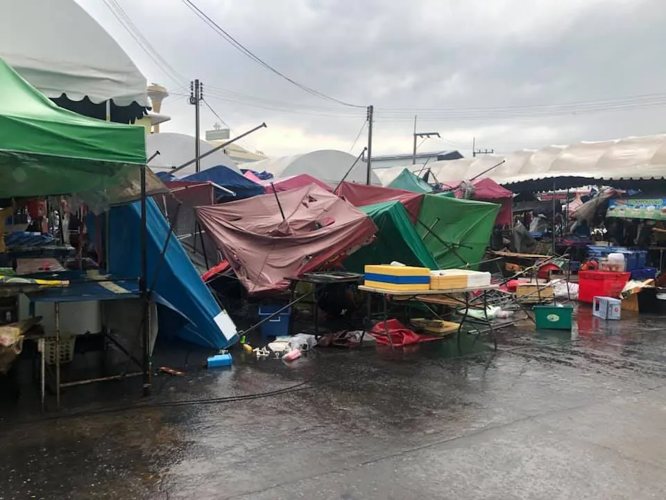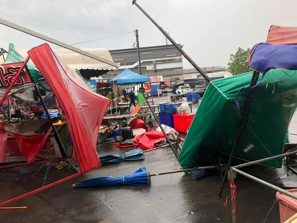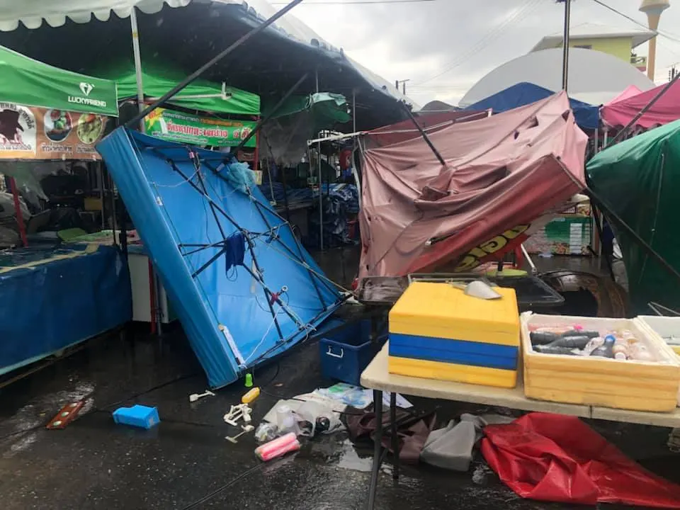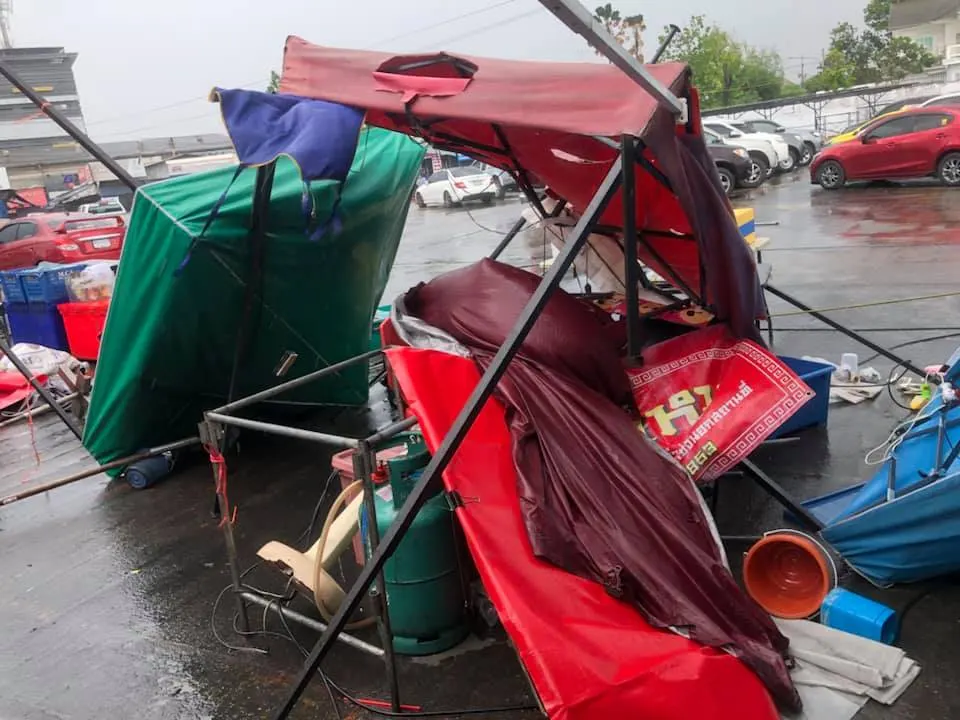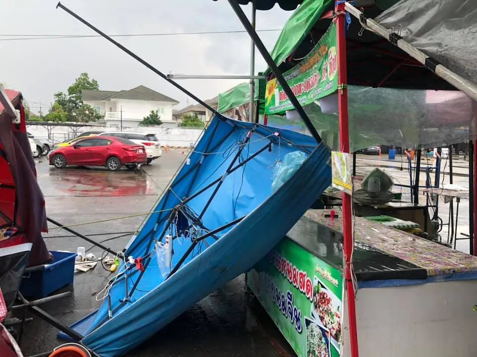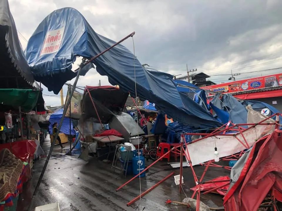พังยับ! เผยภาพความเสียหายจากพายุฝนกระหน่ำ ที่ตลาดพูนทรัพย์ จ.ปทุมธานี