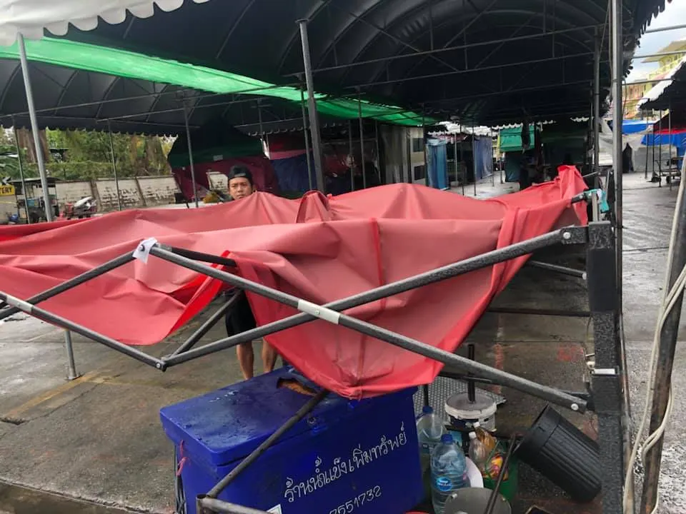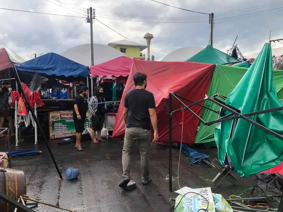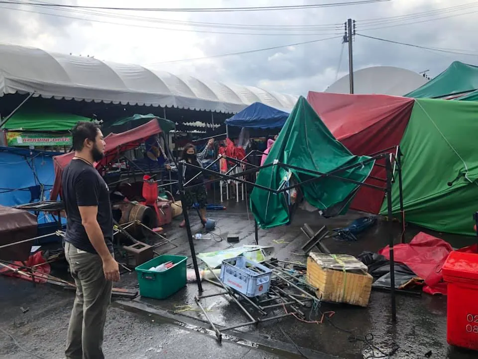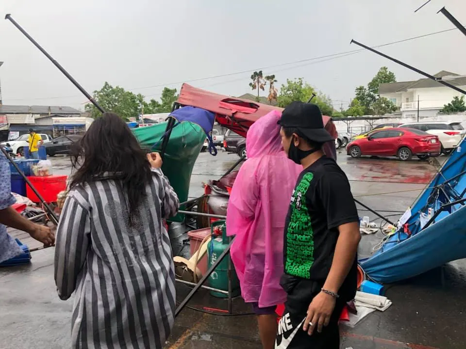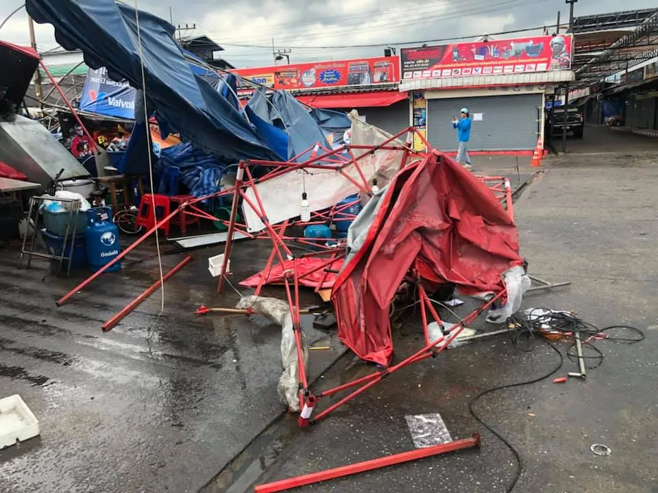ภาพความเสียหายจากพายุฝนกระหน่ำ ช่วงบ่าย วันนี้ (17 เม.ย.63) ที่ตลาดพูนทรัพย์ จ.ปทุมธานี