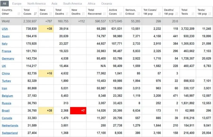 เป็นอีกหนึ่งข่าวสารดีๆ สำหรับในช่วงที่มีสถานการณ์ covid ที่ทั่วโลกกำลังเผชิญอยู่ ทำให้ประชาชนทั่วไปต้องเฝ้าระวังกันอย่างเข้มงวด จนเกิดความ เ ดื อ ด ร้อนไปทั่ว ล่าสุดข้อมูลจากทั่วโลก ณ วันที่ 19 เมษายน 2563 เวลา 09.00 น. เปิดเผยว่า มีผู้ป่วยสะสมทั่วโลกอยู่ที่ 2,330,937 ราย มีผู้ เ สี ย 160,755 คน ในจำนวนนี้มีผู้รักษาหายแล้ว 596,537 ราย