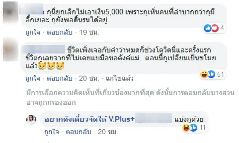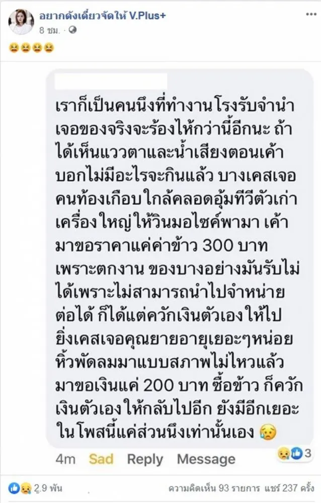 ต้องบอกเลยว่า ในสถานการณ์แบบนี้ คนที่ลำบากกว่าเรายังมีอีกเยอะ น่าเห็นใจคนที่ไม่มีแม้แต่เงินกินข้าว ต้องนำของมีค่าในบ้านไปจำนำเพื่อแลกกับเงินเพียงไม่กี่ร้อย