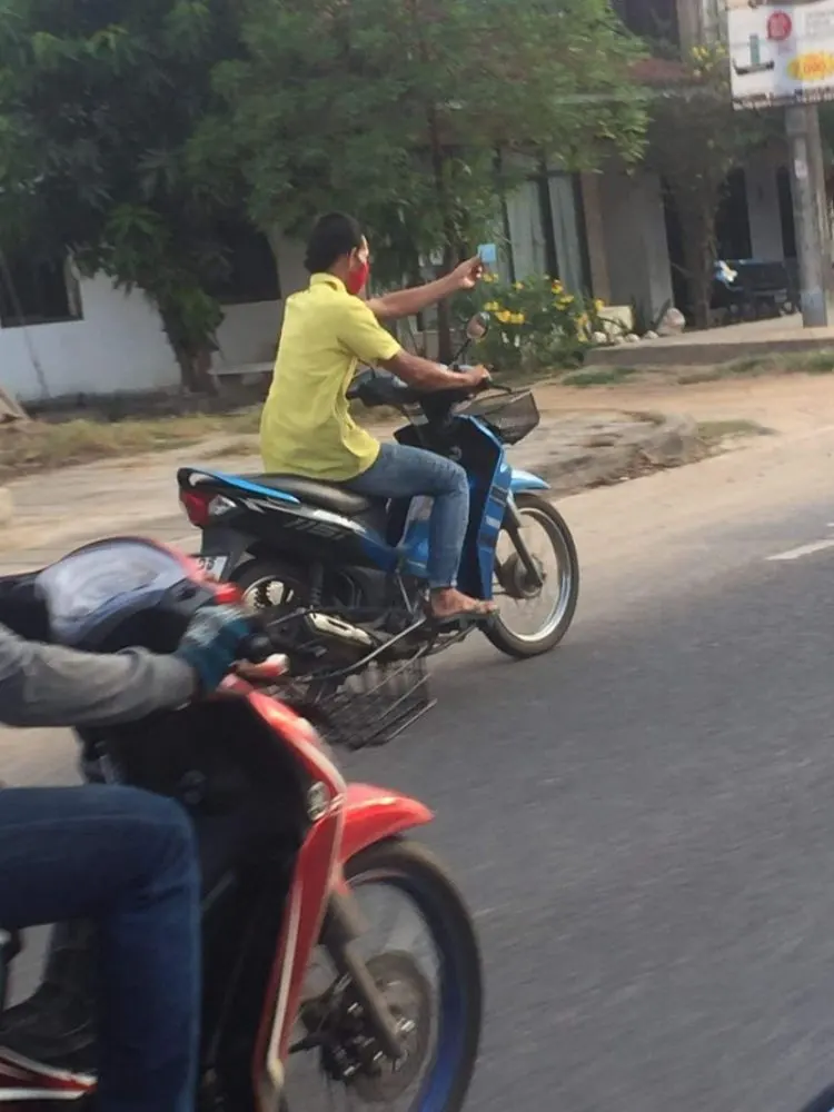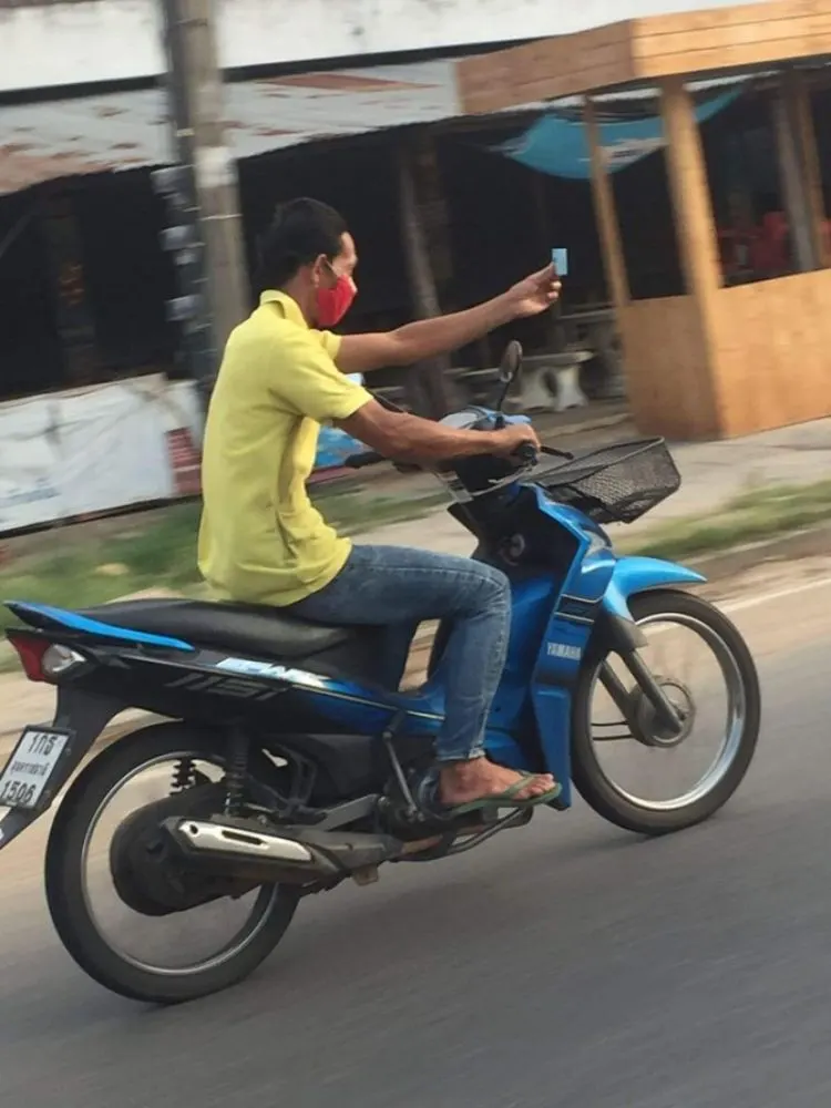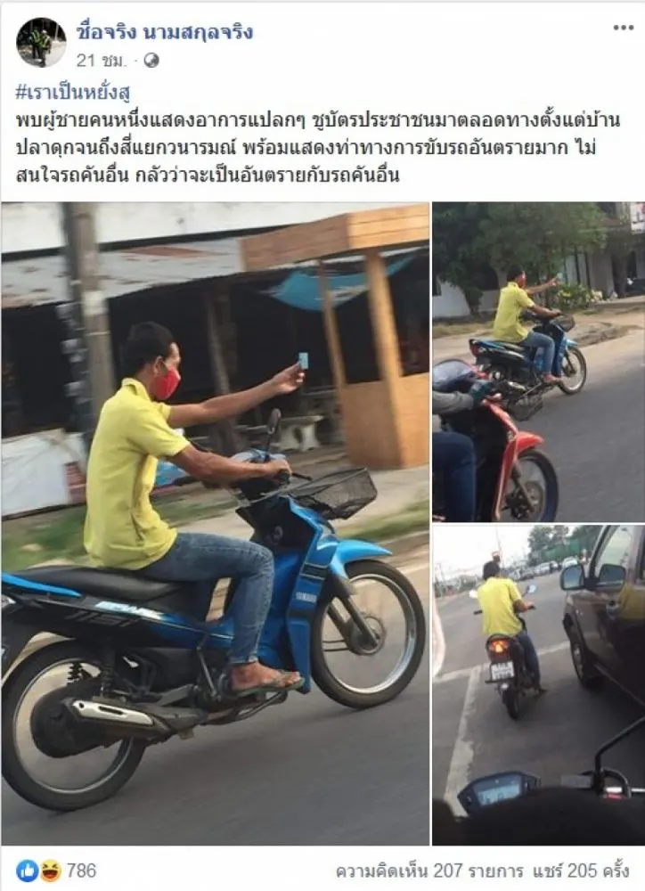 กลายเป็นอีกเรื่องราวที่สร้างความแปลกใจให้กับผู้ที่พบเห็นและชาวโซเชียลเป็นจำนวนมาก เมื่อได้มีผู้ใช้เฟซบุ๊ค ชื่อจริง นามสกุลจริง ได้โพสต์ภาพของหนุ่มปริศนาคนหนึ่ง ที่ได้ขับขี่รถจักรยานยนต์บนท้องถนน ด้วยท่าทางที่สุดแปลก หนุ่มรายนี้ได้ชูบัตรประชาชนในขณะที่กำลังขี่รถไปตลอดทั้งทาง สร้างความแปลกใจให้กับผู้ที่พบเห็นเป็นจำนวนมาก โดยผู้ใช้เฟซบุ๊ค ชื่อจริง นามสกุลจริง ได้โพสต์ระบุข้อความว่า