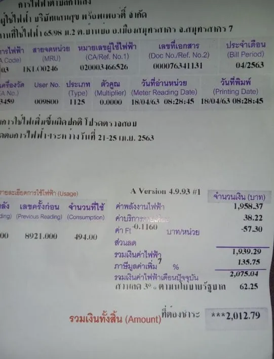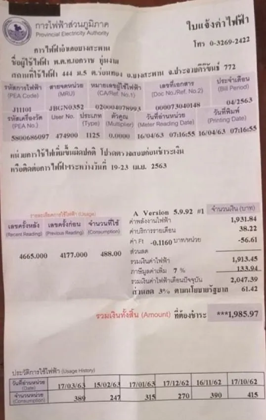 บิลค่าไฟดังกล่าว